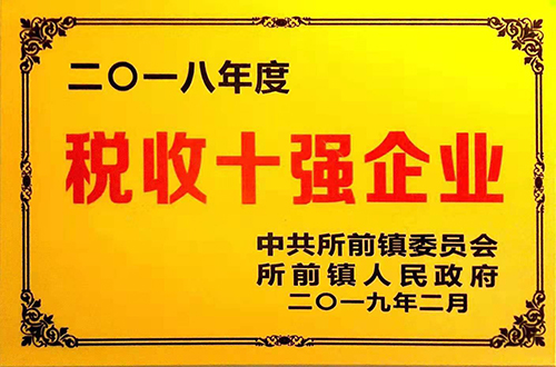 ▲喜獲所前鎮“稅收十強企業(yè)”